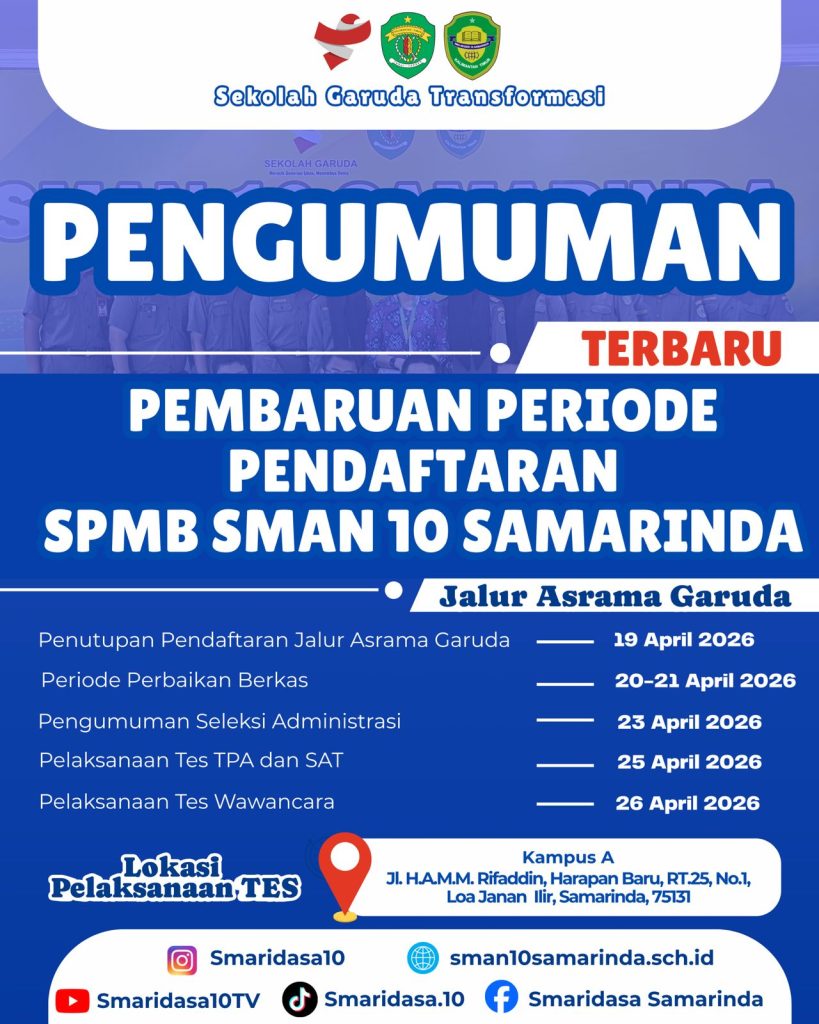 PEMBARUAN PERIODE PENDAFTARAN SPMB SMAN 10 SAMARINDA