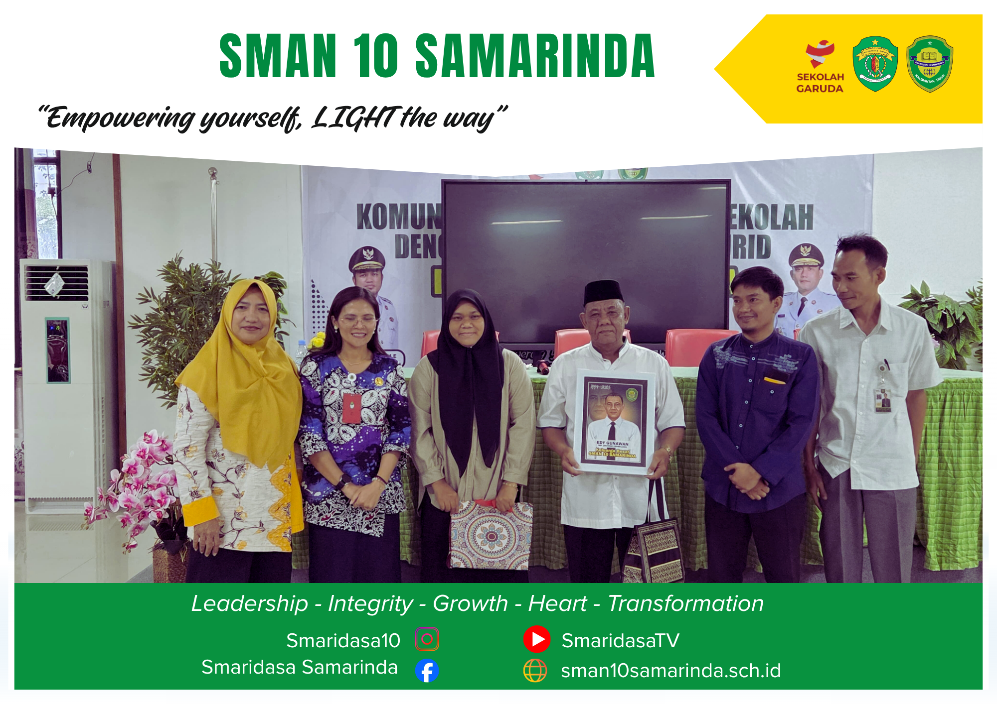 Seluruh elemen SMAN 10 Samarinda mengucapkan selamat memasuki masa purna tugas dan semoga Bapak Edy Gunawan beserta keluarga senantiasa sehat dan bahagia. Kami berharap pengalaman dan ilmu yang telah Bapak berikan dapat menjadi warisan berharga bagi kami. Kami juga berharap Bapak Edy Gunawan dapat menikmati masa pensiun dengan baik.