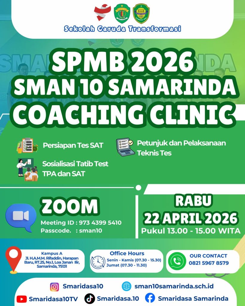 Samarinda – SMAN 10 Samarinda melaksanakan proses Penerimaan Murid Baru (SPMB) Tahun Pelajaran 2026/2027 melalui Jalur Asrama Garuda yang berlangsung pada 9–19 April 2026. Jalur ini menjadi salah satu program unggulan sekolah dalam menjaring calon peserta didik berpotensi dari berbagai daerah. Pada jalur ini, kuota yang disediakan sebanyak 144 siswa, yang merupakan 40% dari total keseluruhan kuota penerimaan peserta didik baru di SMAN 10 Samarinda.