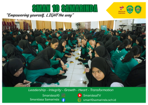Dalam rangka mengimplementasikan Gerakan Keamanan Pangan dan 7 Kebiasaan Anak Indonesia Hebat, SMAN 10 Samarinda menggelar kegiatan makan buah bersama yang serentak dilaksanakan di kampus A dan kampus Edu pada hari Jumat, 10 Oktober 2025. Acara ini disambut antusias oleh seluruh siswa yang turut serta memeriahkan kegiatan positif tersebut.